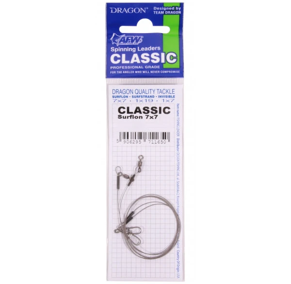 De Dragon AFW Surflon 7×7 Classic Leaders worden met de hand gemaakt van topkwaliteit staaldraad voor het betrouwbaarste resultaat. Zo worden de sleeves met een sleevetang via luchtdruk met de juiste kracht vastgeknepen. Deze onderlijnen zijn uiterst soepel en hebben een gladde nylon coating die ervoor zorgt dat deze onderlijnen een hogere kink weerstand hebben en daardoor langer mee zullen gaan.