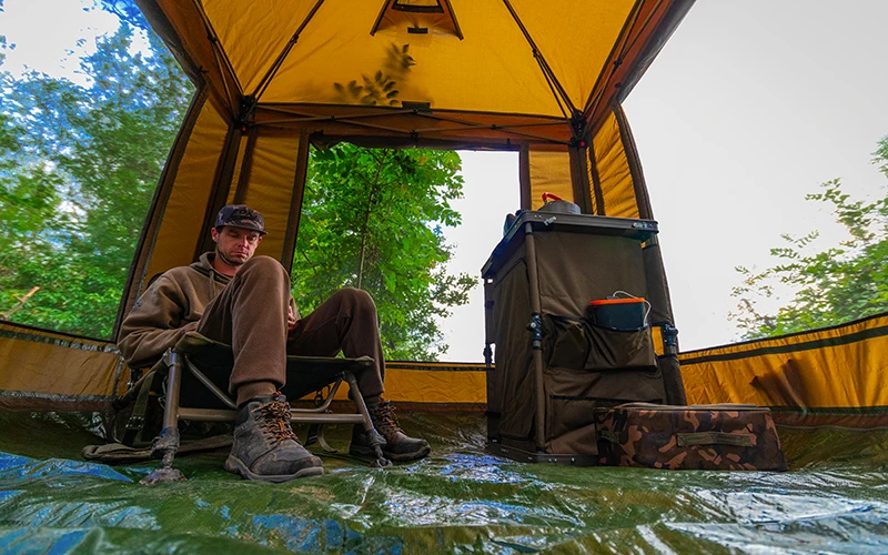 De Social Shelter van Fox is ideaal tijdens een lange sessie met familie of vismaten. Dit is het ideale verblijf om dagelijkse maaltijden in te bereiden, rigs te knopen, aas te bereiden en te chillen! De lichtgewicht Social Shelter is supersnel en gemakkelijk op te zetten en wordt geleverd in een extra grote draagtas zodat je hem gemakkelijk meeneemt naar de waterkant!